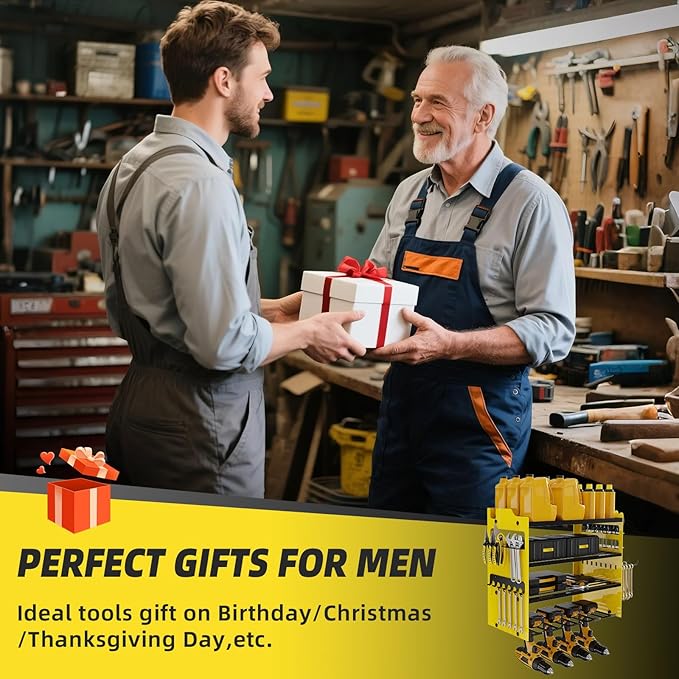 - 📏【PERFECT GIFT FOR MEN】This hanging Tool Shelf is ideal for garages,workshops,tool rooms,basements,workshops, factories and warehouses,A thouhtful gift for Men,father, husband, colleagues, boyfriend, brother on birthdays, Christmas, Thanksgiving Day or any special holidays. This sturdy battery powered tool storage is a must-have for any DIY enthusiast or professional seeking efficient storage solutions.
