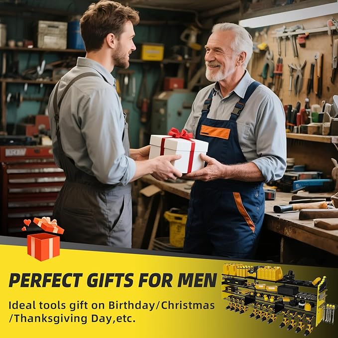 - 📏【PERFECT GIFT FOR MEN】The drill organizers and storage is ideal for garages,workshops,tool rooms,basements,workshops, factories and warehouses,A thouhtful gift for Men,father, husband, colleagues, boyfriend, brother on birthdays, Christmas, Thanksgiving Day or any special holidays. This sturdy battery powered tool storage is a must-have for any DIY enthusiast or professional seeking efficient storage solutions.