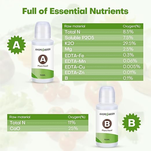- Precise & Scientifically-Balanced AB Formula: Unlock professional-grade results with Ahopegarden’s two-part hydroponic nutrient solution. Our formula separates incompatible minerals to maximize potency, ensuring your plants absorb a full spectrum of micro and macronutrients for larger yields and healthier growth.