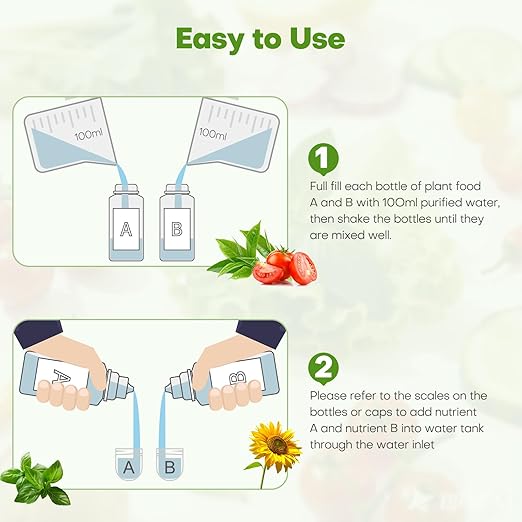 - Incredibly Easy to Use for Beginners: Achieve success from day one—even if you're new to hydroponics. Our crystal-clear instructions make it effortless: just add 5ml each of Solution A & B to 1L of water, then mix. This simple 1:200 ratio provides optimally balanced hydroponic plant food for thriving plants.