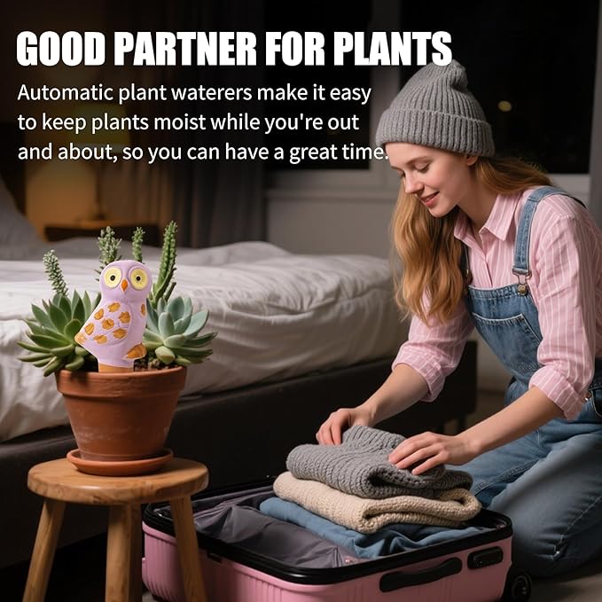 - Joyful Gift for Garden Enthusiasts: Combine function and artistry: Each owl-themed watering spike delights plant lovers with its playful design. A practical yet decorative upgrade to elevate windowsills, patios, and garden spaces.