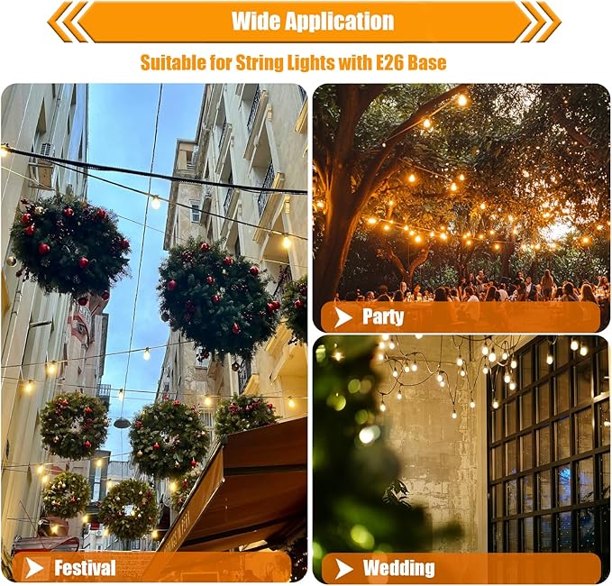 - Wide Applications: Suitable for E26 sockets lighting fixtures and great for cafe, gazebos, garden, patio or other decorative locations