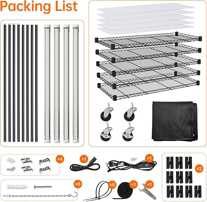 - Tool-Free Assembly & Leak-Proof Design - Quick to assemble without tools, this plant shelf with grow light includes 5 PP waterproof mats to protect lights from spills. Complete with 4 lights, metal grow shelves, connectors, and accessories, it’s a hassle-free indoor gardening system for beginners and experts alike