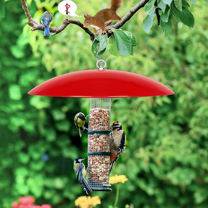 - 【Installation Applicable Scenarios】simple and complete accessories, no special tools or expertise required, hanging installation, whether it is a pole or the side of the house is easy to install, this hummingbird feeding umbrella can also be used to keep squirrels away from your birdseed and turpentine chunks.
