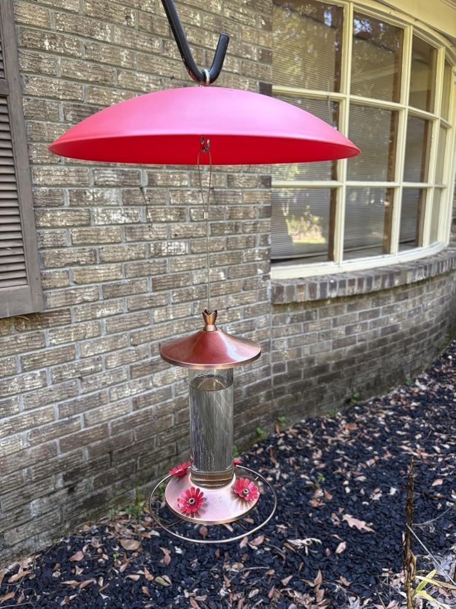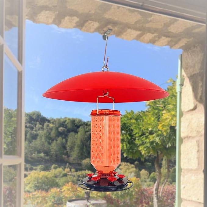 - 【13 Inch Dome Cover】Fits most hummingbird feeders, easy to install, just hang it on a shepherd's hook or tree trunk, the feeder will hang below the dome cover, which protects your precious bird food! The curved design effectively blocks rain and leaves from entering the inside of the bird feeder.
