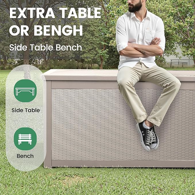 - Large Storage Capacity:Offers a generous storage capacity of 980 liters / 260 gallons, equipped with iron rods and two piston hinges, ideal for storing a large amount of outdoor items