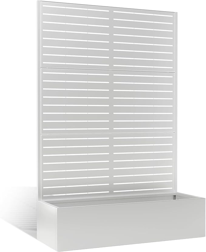 - 💧【Spacious and Efficient Planting Area】Enjoy abundant space in this metal planter box with trellis, ideal for vegetables, herbs, and climbing flowers. Drainage holes prevent waterlogging, making it a perfect garden raised bed for climbing plants. With its vertical structure, this metal planter with privacy screen allows you to grow upward, saving ground space. Plus, this metal planter box with trellis is great for small patios or urban gardens.