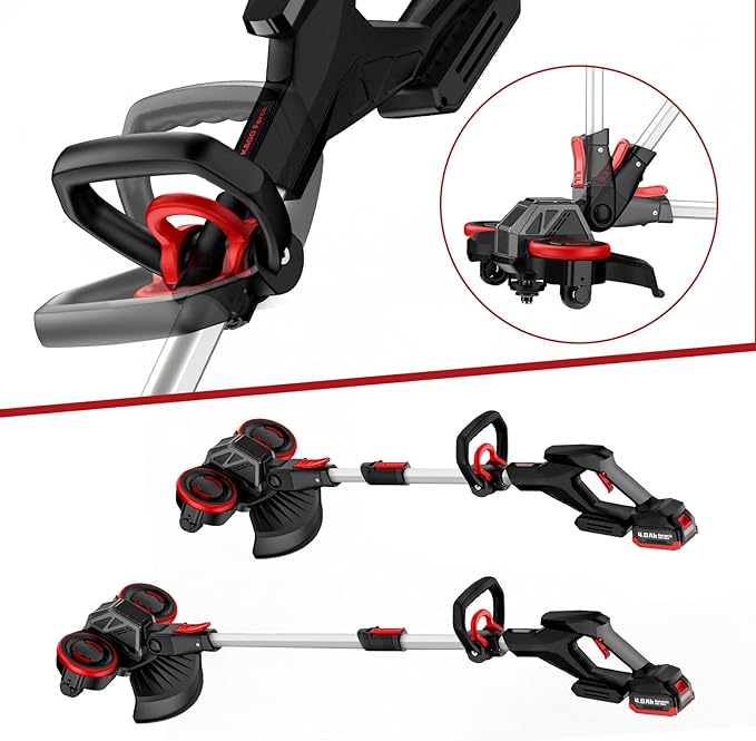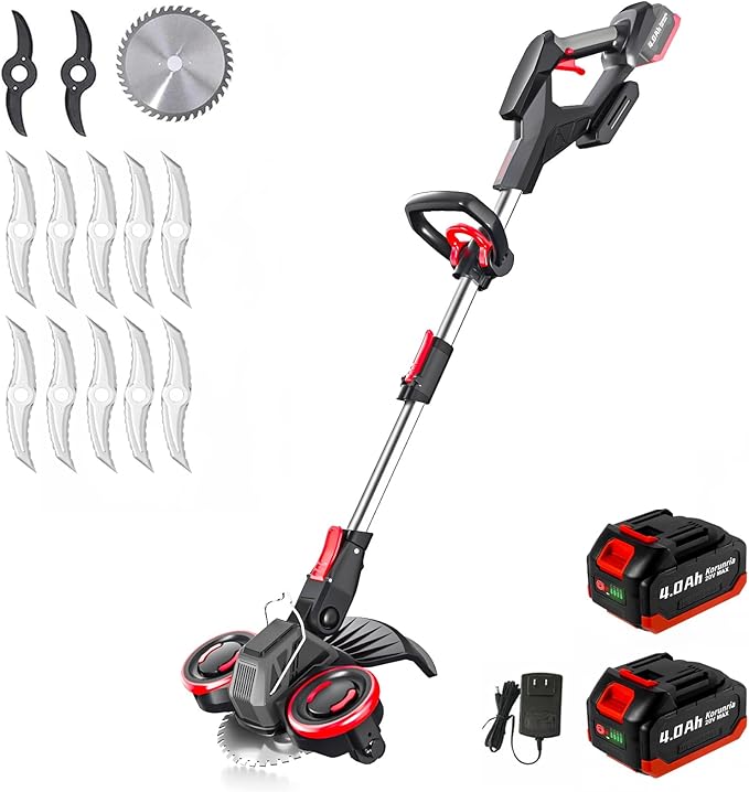 Blade Weed Wacker with Wheels, Electric Weed Wacker Cordless, 3-in-1 Brush Cutter & Edger & Mini-Mower with 4.0Ah Battery and Charger, 30+Mins & Brushless Motor, K&GO Force (Two Batteries)