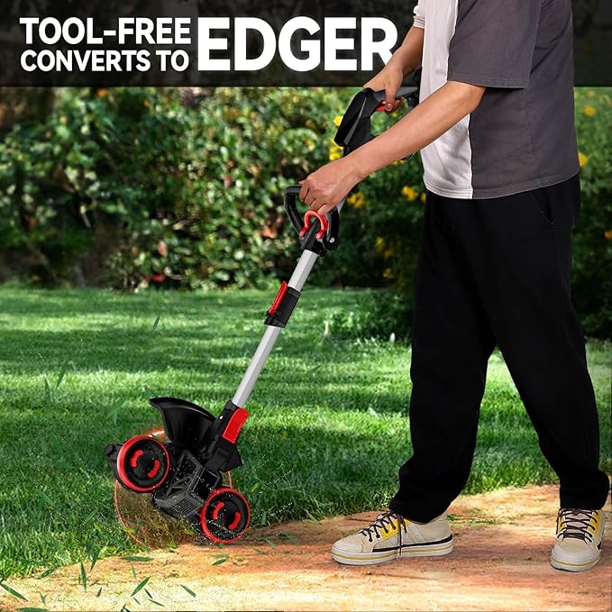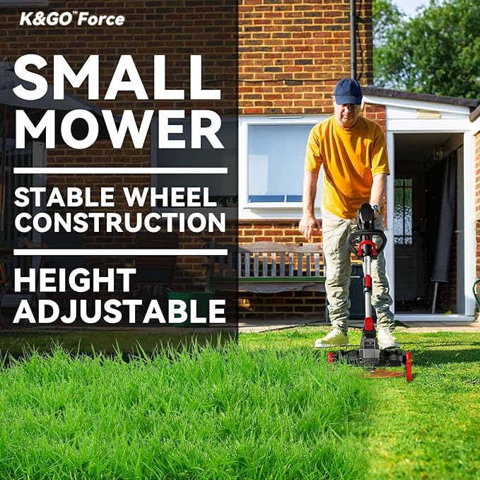 Blade Weed Wacker with Wheels, Electric Weed Wacker Cordless, 3-in-1 Brush Cutter & Edger & Mini-Mower with 4.0Ah Battery and Charger, 30+Mins & Brushless Motor, K&GO Force (One Battery)