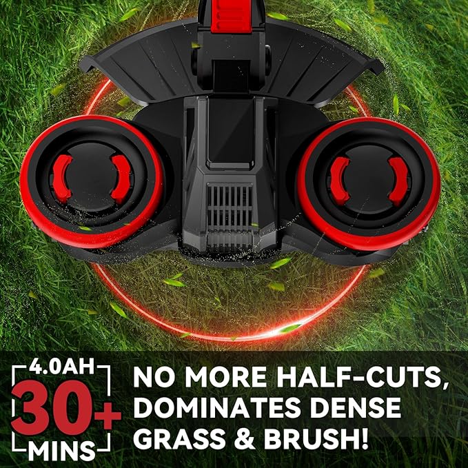 - β[Powerhouse Performance] High-torque motor crushes overgrowth and uneven terrain in half the time.
