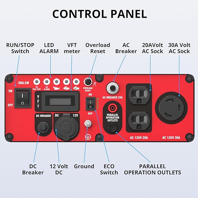 - SAFETY FIRST- Equipped with a 223cc 4-stroke gas engine and compliant with EPA standards, it features carbon monoxide detection, low oil shutoff, and overload protection. These built-in safeguards keep your gas generator for camping operating securely wherever you take it