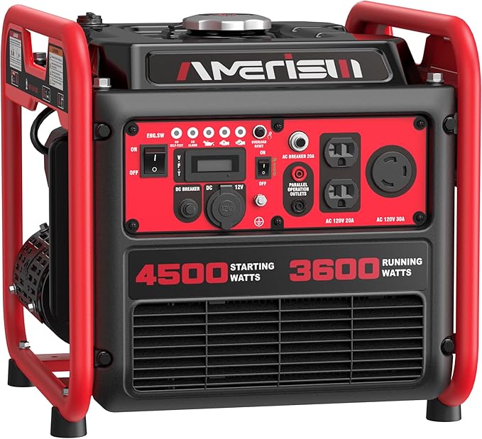 - POWERFUL PERFORMANCE- 4500W of peak power and 3600W of running power, this gas generator is built to support demanding loads from household essentials, RV systems, or tools on the job site. It’s designed to deliver steady output when you need it most