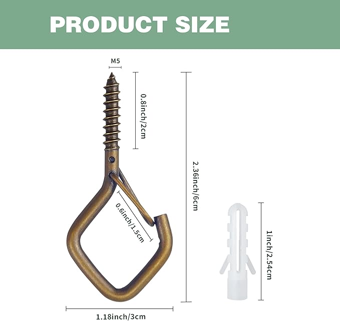 - 【Widely Use】Outdoor plant hooks are easy to install on wood, perfect for patios, decks, fences, etc. Each diamond hook comes with a plastic anchor for solid surfaces like drywall, windowsills, garages, ceilings, etc. Spiral hooks are perfect for hanging lighting items such as holiday lights, outdoor lights, drip lines, plants, birdhouses, curtains, ropes, wind chimes, feeders, flower pots, and more. Decorate your home and keep it clean and tidy.