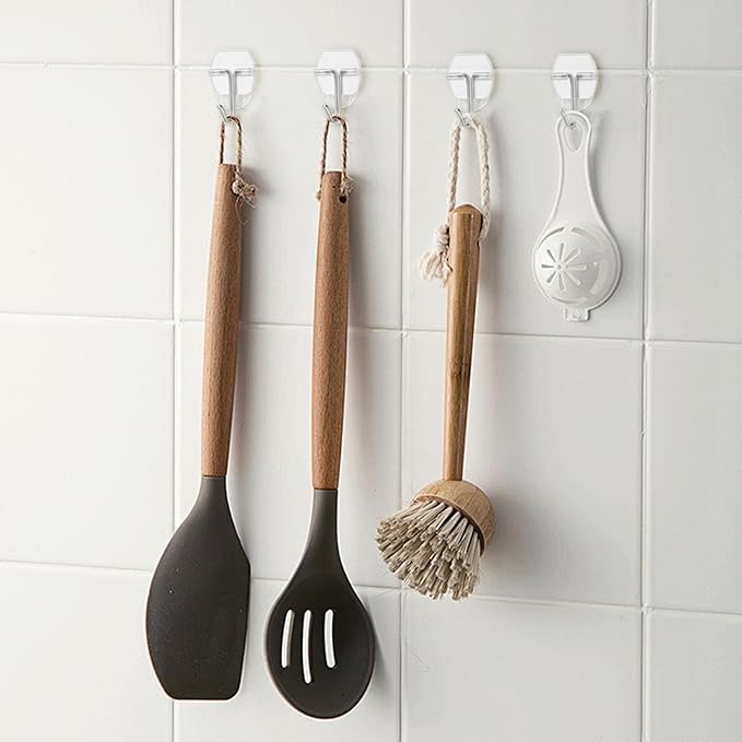 - 【TRANSPARENT DESIGN】: Both Hooks and Removable Adhesive Strips are designed with transparency, which can match well with items and integrate well into the usage environment without affecting the overall aesthetics.