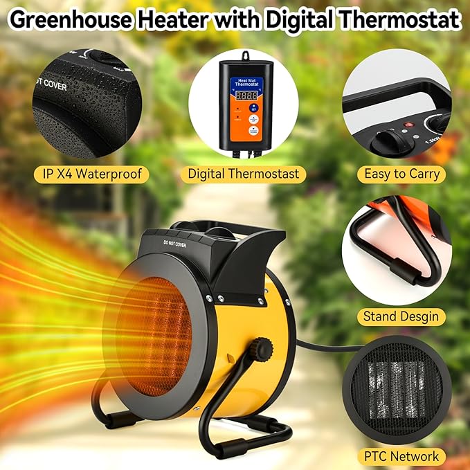 - Advanced Greenhouse Heater with Thermostat: Precisely control temperatures from 40°F-108°F (5°C-42°C) while selecting 20W/750W/1500W outputs for customized climate management.
