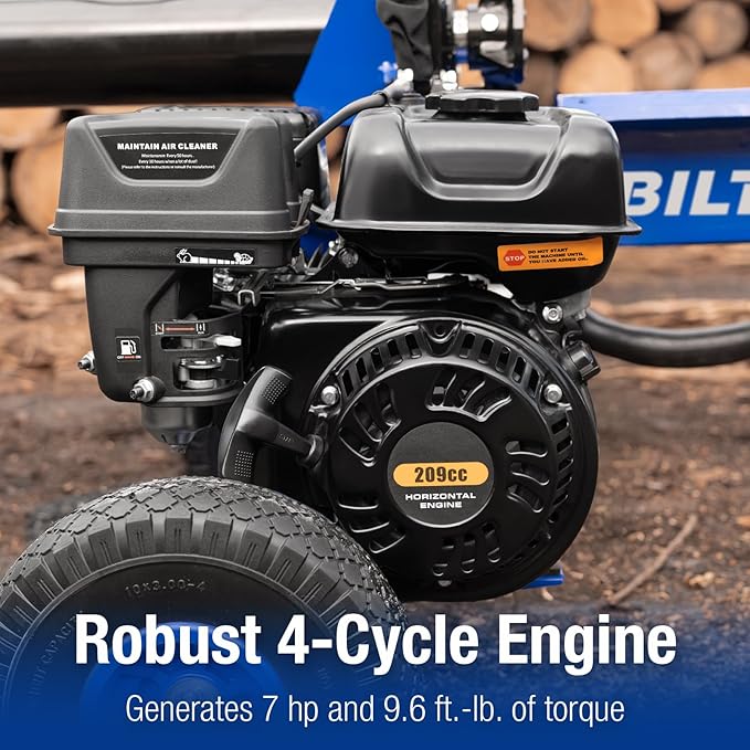 - Powerful 18-Ton Splitting Force - This robust gas log splitter delivers a massive 18 tons of splitting power, driven by a reliable 7 HP 209cc OHV engine producing 9.6 ft.-lb. of torque. Designed to split even the toughest wood quickly and efficiently.