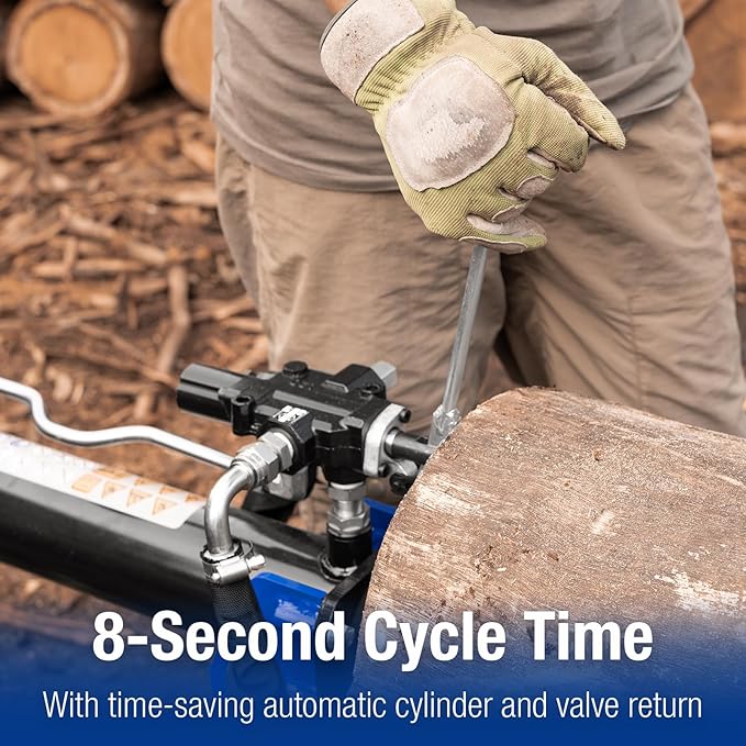 - High-Efficiency Performance - With a fast cycle time of just 7.5 seconds, this gas wood splitter handles logs up to 20" in length and 16" in diameter. Perfect for high-volume splitting with minimal effort.
