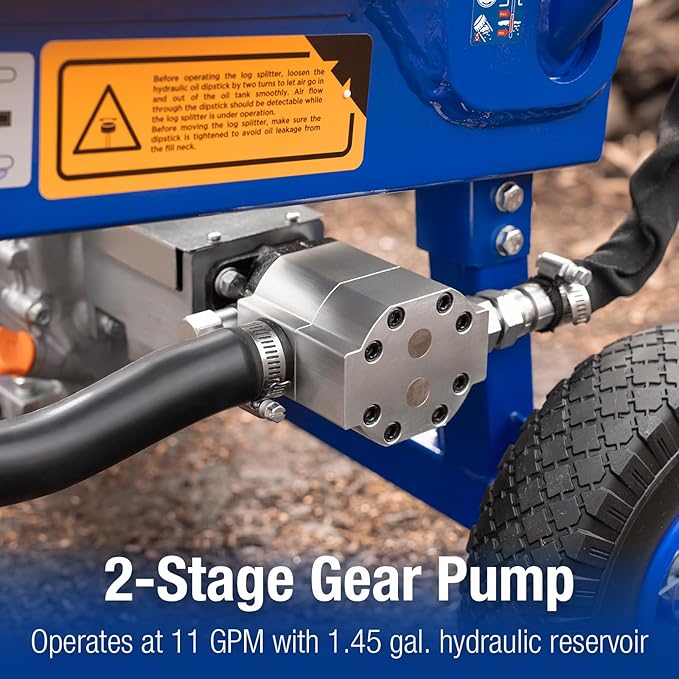- Heavy-Duty Hydraulic System - The 10.5 GPM hydraulic system ensures long-lasting performance of this firewood splitting machine. Please note: Hydraulic fluid and engine oil are not included; AW32 hydraulic fluid is recommended.