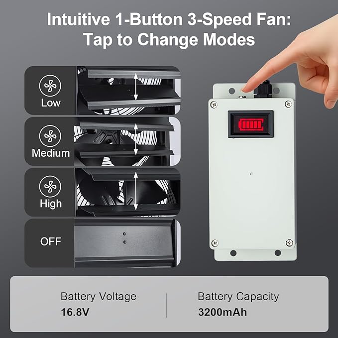 - Smart Control and Powerful Performance: Easily switch between low, medium, and high fan speeds with a single button, meeting diverse ventilation needs. Delivers powerful 1200 CFM airflow and high 1200 RPM speed, rapidly providing efficient ventilation for spaces up to 1400 square feet (e.g., greenhouses, attics)