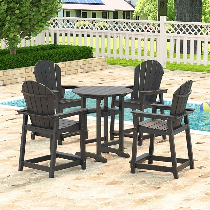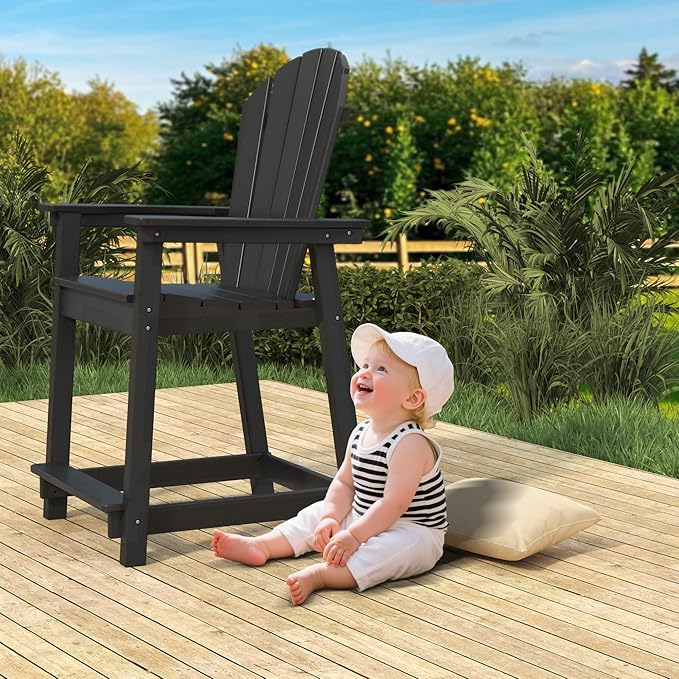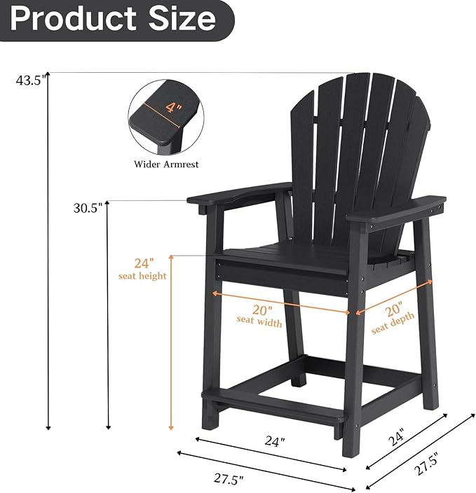 - 24 Inches Seat Height: This Adirondack bar chair with 24" seat height matches your bar table (not included) with 35"-40" height, making it a perfect complement for your outdoors. Overall dimension: 23" x 23" x 43" (L x W x H).