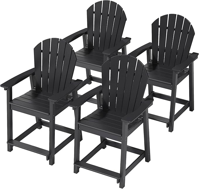 Outdoor Tall Adirondack Chair, HDPE Weather Resistant Outdoor Chair for Garden, Backyard, Poolside, Capacity 400LBS (4 PCS, Black)