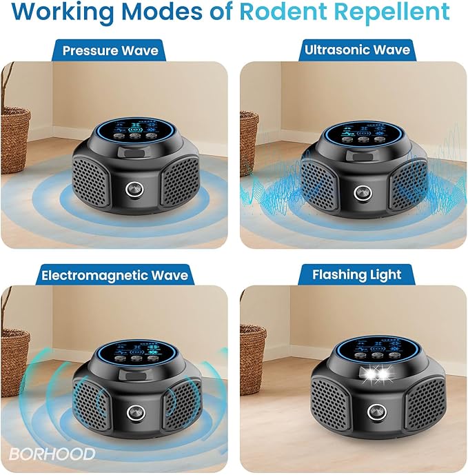 - Safety: The rat repeller is non-toxic, trap-free, and chemical-free, safe and harmless to humans and pets, and can be used at home or in the car with confidence