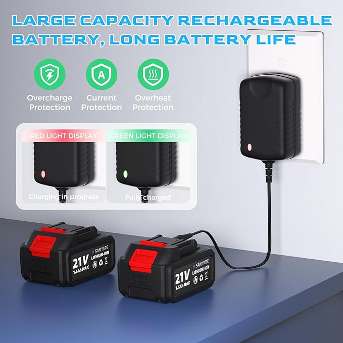 - 【Large Capacity Rechargeable Battery】Cordless Leaf Blower with Battery and Charger comes with 2 21V-15000mAh batteries and a quick charger for 40 minutes of continuous operation (20minutes per battery). For more efficient care of your yard, the charger is designed as a rapid charger that quickly recharges the batteries