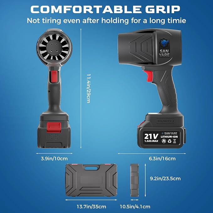 - 【Versatile Usage Scenarios】The Sanyare portable cordless leaf blower is designed for a variety of tasks. It’s perfect not only for car drying, but also for outdoor activities like camping and barbecuing. Additionally, it excels in household cleaning tasks such as dust removal and leaf blowing, making it a practical and convenient tool for all your cleaning needs.The exquisite packaging design is also suitable as a gift for friends and family