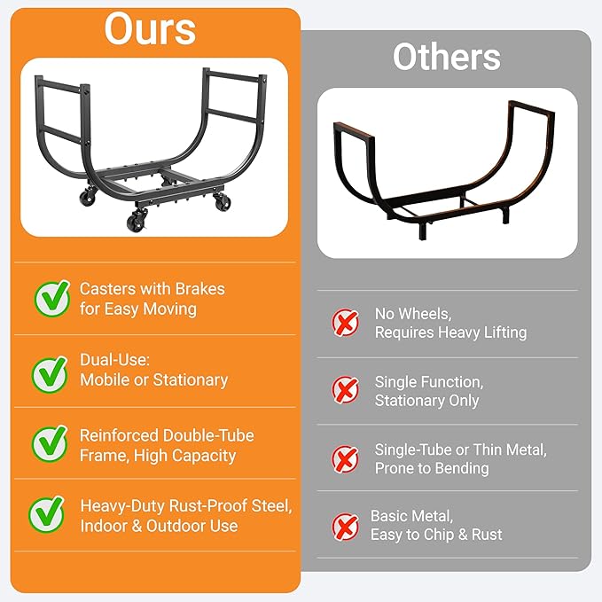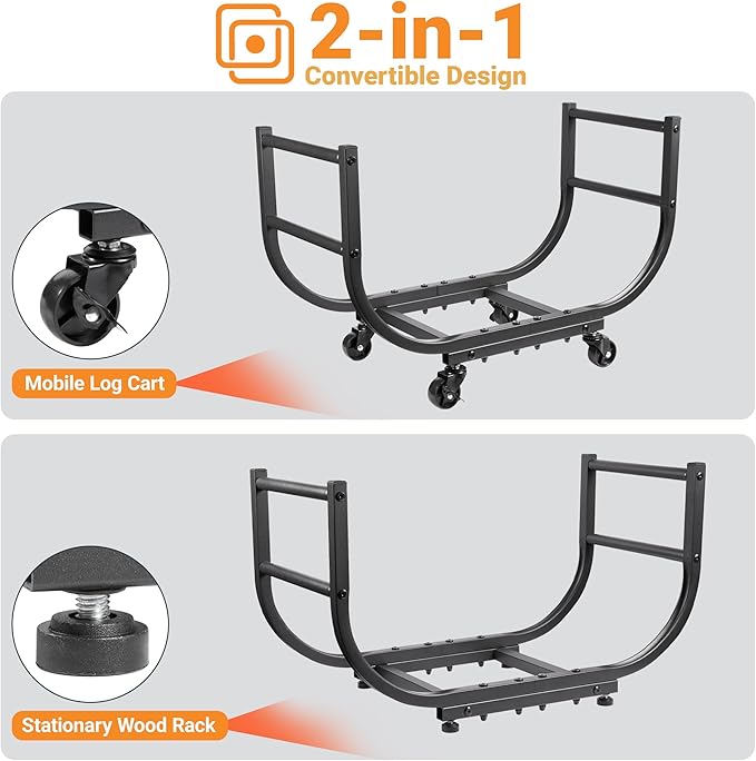 - Versatile 2-In-1 Design: Use it as a mobile log holder with wheels, or easily switch to the included stationary feet for a more permanent fireplace wood holder setup