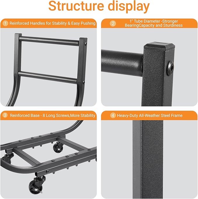 - Indoor & Outdoor Mobility: Effortlessly move your firewood from your outdoor wood rack to your indoor fireplace. This firewood cart with four smooth-rolling wheels (2 lockable) makes transporting logs a breeze