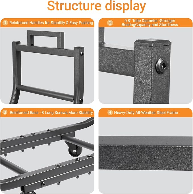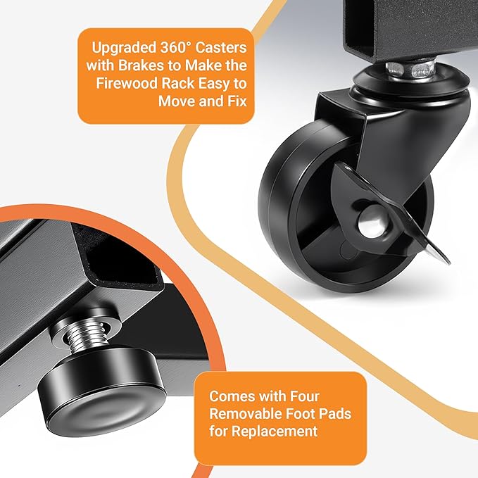 - Firewood Rack Upgrade: Equipped with smooth wheels and ergonomic handles, this firewood rack doubles as a convenient cart.Maximum load capacity up to 800 lbs