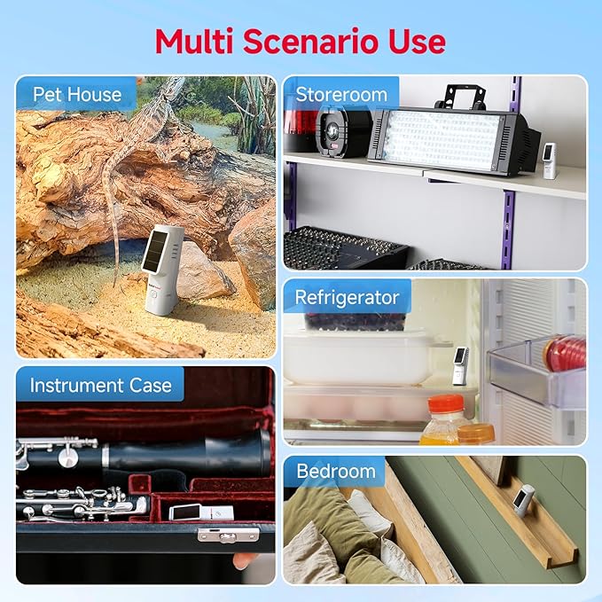 - Historical Data & Visual Trends at Your Fingertips: Effortlessly track up to 2 years of temperature and humidity records via the app. Get crystal-clear trend graphs to monitor seasonal changes in your Hygrometer Thermometer Sensor—ideal for long-term storage rooms or indoor gardening enthusiasts.