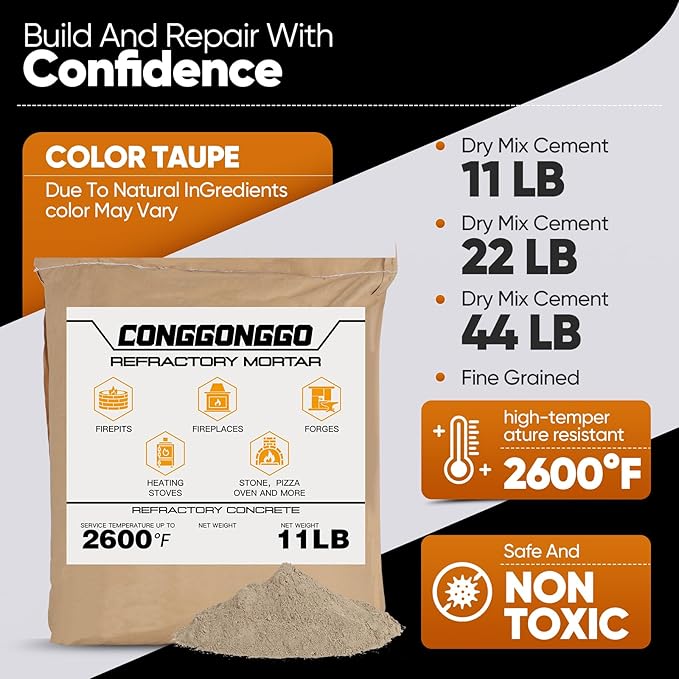 - 🧱【Fast-Setting Refractory Mortar】 Masonry & Fire Brick Repair and The Flue Seal & Repair Expert.Three package sizes available: 11 lb, 22 lb, 44 lb.