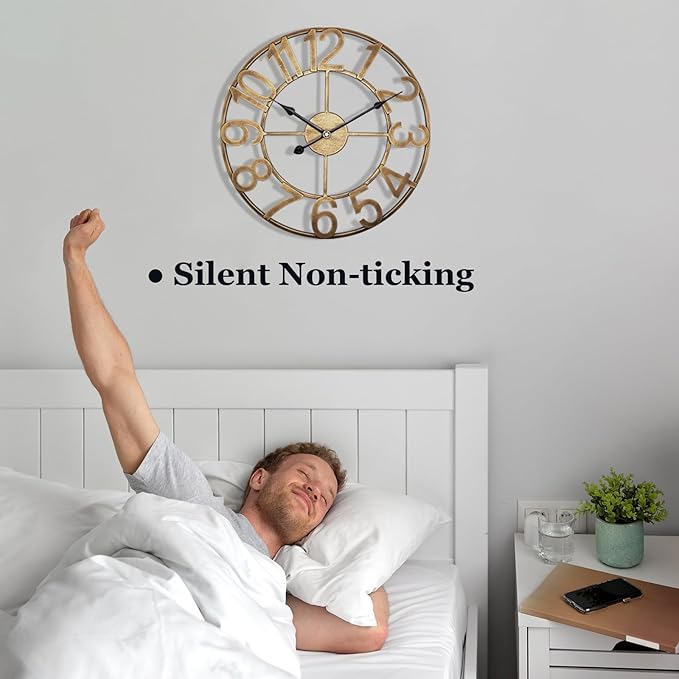 - 🕛【Easy-to-Read Design】 - Oversized Numerals! Enjoy the convenience of large Arabic numerals, effortlessly readable even from a distance. With a keyhole on the back for easy hanging, this clock seamlessly complements your wall art.