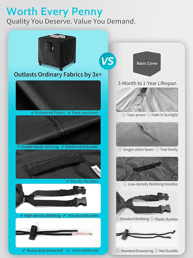 - SECURE IN ANY STORM: Don’t worry about late-night gusts or sudden storms. Four buckle straps and a pull-tight drawstring keep the cover firmly in place—no slipping, no flapping, no 3AM surprises