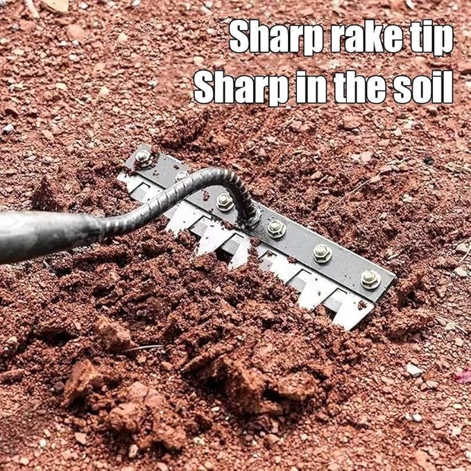 - Ergonomic & Comfortable – Features a removable handle with a non-slip grip for easy control. The carbon steel design reduces hand fatigue, enabling longer, more comfortable weeding sessions for a flawless garden【Heavy-Duty Weeding Rake】 Made with high-carbon steel tines, this rugged tool effortlessly breaks through rocky, clay, and dry soil. Built to last, it handles tough weeding and soil prep with ease—ideal for both home gardeners and professionals