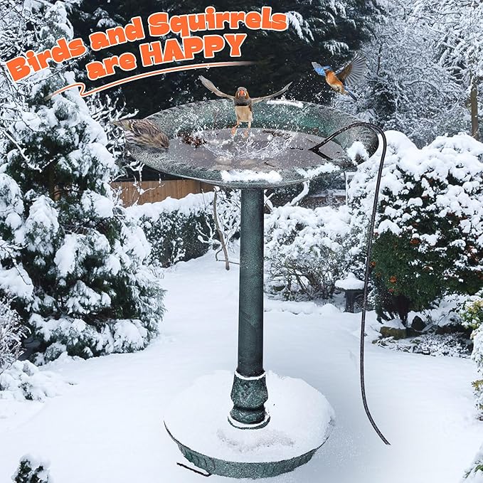 - Safe for Bird: built in heating wire, the heated base has a power cord which protected and quality, so birds and squirrels won't get hurt if they peck at the electric cord, and it keeps curious birds safe, then enjoy warm water in a frozen and snow covered winter