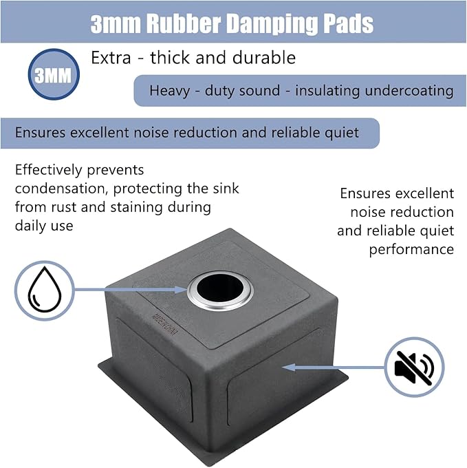 - QUIET Performance: 5 Sound-proof Pads have been added to the bottom of all of VALISY's stainless steel sinks to reduce the sound of running water. Undercoating condensation layer minimize noise and reduce condensation to protect your cabinet.