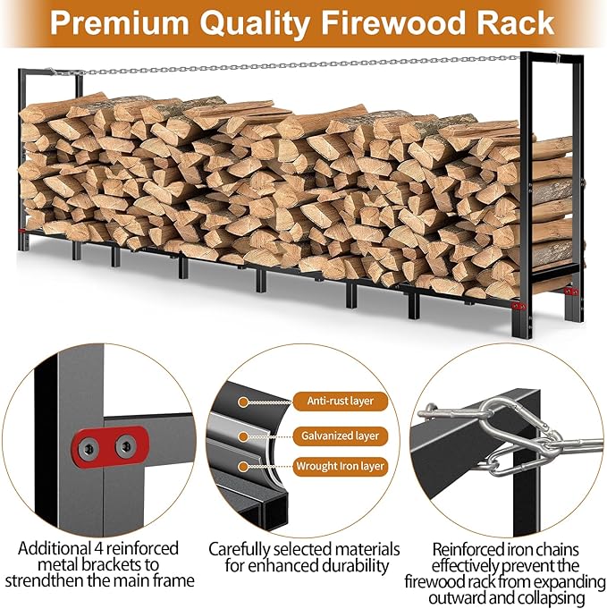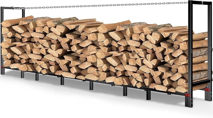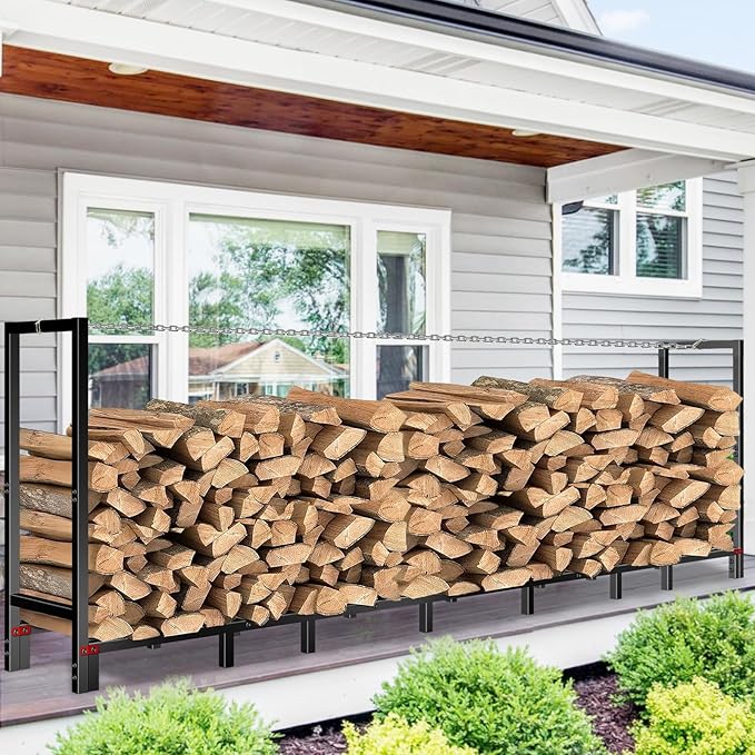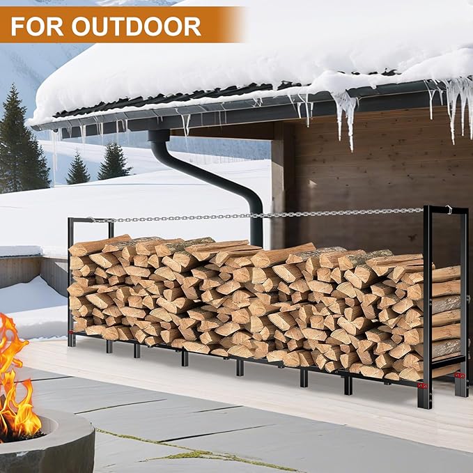- 【Enhances Stability & Security】- The firewood rack features reinforced chain to strengthen the main frame and prevent structural deformation when the fireplace log holder is fully loaded. It has 20 support legs, each with two uprights, ensuring stability and reliability, and can easily withstand loads of up to 1500 pounds.