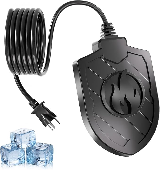 - 【Automatic and Thermostatic】Built-in constant temperature sensor, thermostatically controlled, this heated bird bath deicer operates intelligently: starts working when the temperature near freezing point 32°F /2°C and auto-off to ensure safety when it reaches 95°F/ 35°C, simplifies maintenance while reducing electricity costs. Say goodbye to frozen birdbaths!