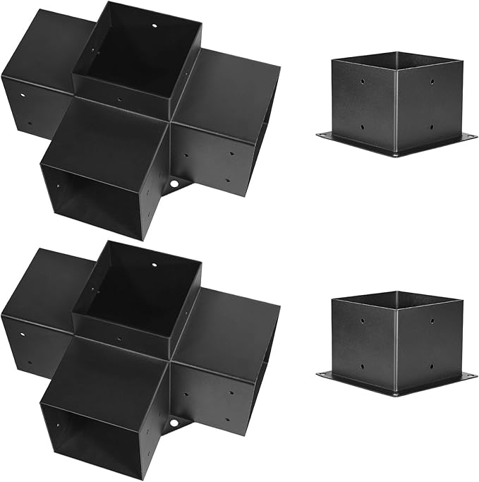 - 6x6 Inch Four-Way Pergola Brackets: This durable and strong pergola bracket kit that covers wooden beams, keeping them from rotting due to rainwater and harsh sunlight. It is designed for the mainstream 6x6 Inch specifications and can accommodate actual dimensions of 5.5 x 5.5 inches (142 x 142 mm) for both soft and hardwood