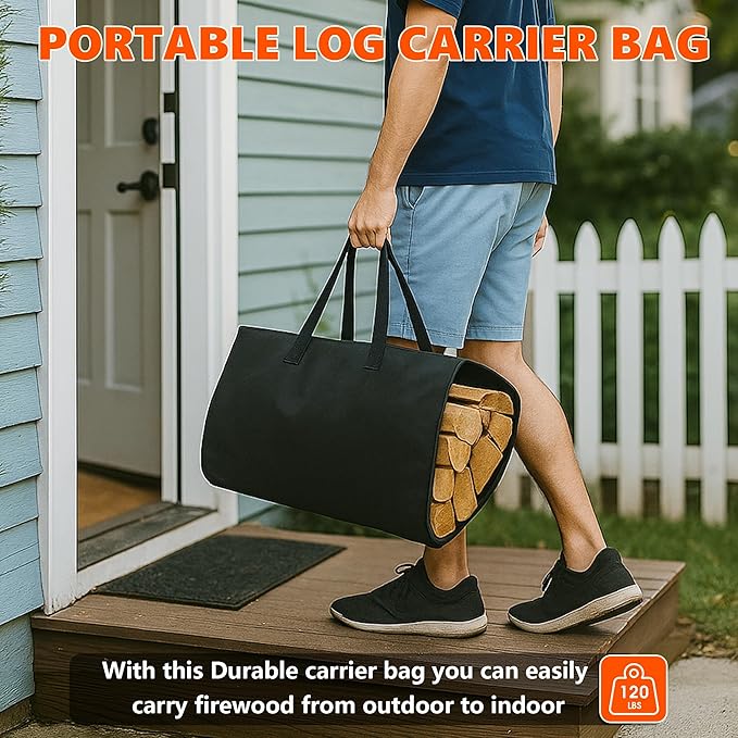 - π―[Great for Indoor or Outdoor] Our firewood holder will fit beautifully in your Indoor fireplace, Outdoor fireplace, Backyard, Porch, Patio, Deck, Cabin, Garage, Campsite, or Fire pit gatherings. Creating a warm, inviting space wherever you gather.