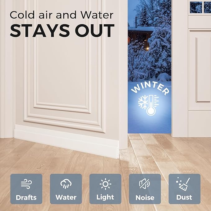 - WONDERFUL DESIGN - Door sweep for bottom of door triple design is adopted to effectively reduce noise, prevent dust from entering through the door, the door stoppers for bottom of door keeps the room quiet and neat. Self-adhesive door draft blocker is very suitable to cover the gaps of exterior/interior doors, rv doors, shower room, baseboard, threshold, windows, garage, basement and furniture