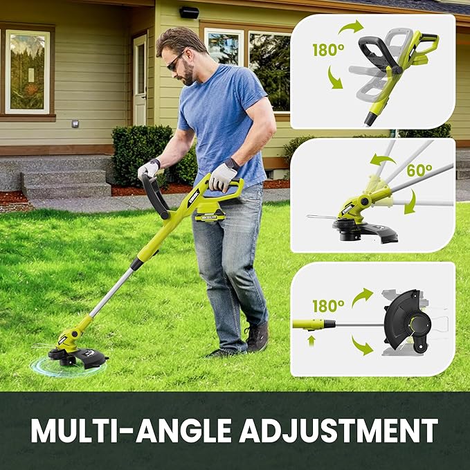 - ✅[ 2-IN-1 STRING TRIMMER & EDGER ] EWORK battery operated weed eater adopts a new ergonomic design, which is fully considered for all kinds of people, . It is equipped with 180° adjustable body, 180° adjustable auxiliary handle and 60° adjustable cutting head, effortlessly converts between trimming and edging modes. You can easily complete the mowing according to the space and comfortable angle needs