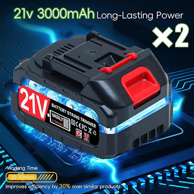 - LONG-LASTING BATTERY POWER: Our battery weed eater is equipped with two high-efficiency 3.0Ah rechargeable batteries that provide an extended run time, allowing you to tackle more weeds without interruption; With a fast charger included, you can quickly get back to your lawn maintenance tasks