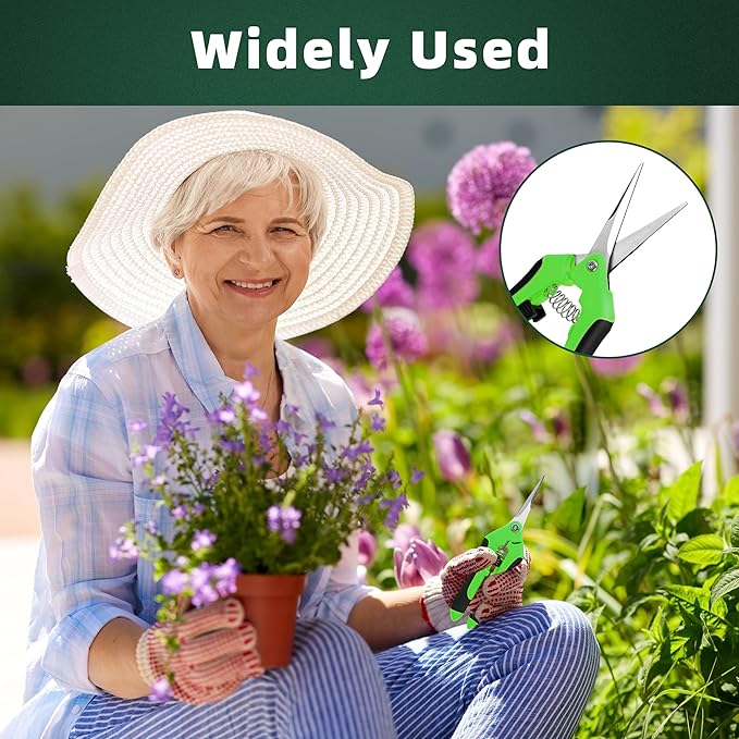 - ERGONOMICALLY DESIGNED RUBBER GRIP: Our pruning shears are made of high-purity PP+TPR plastic, has strong toughness and strength. The handle part is ergonomic in design and non-slip.