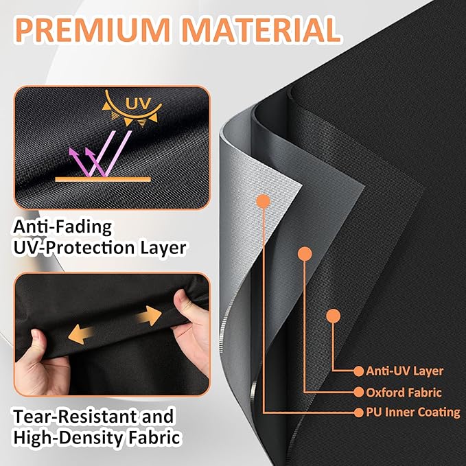 - Durable Material: 600D Polyester/Oxford fabric is a classic choice for outdoor covers, with an added UV-stabilized & Water-resistant coating and a water-resistant laminated backing could prevent water from seeping through cover and keeps your grill dry and ready to use