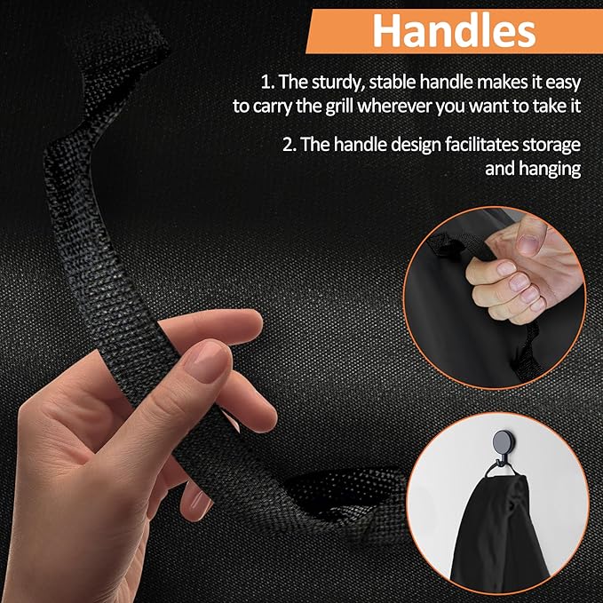 - Weather Resistant: Upgrade the stitching process keep your grill dry on rainy days. It can withstand heavy winds and won't crack in cold weather. Professionally designed hood sizes to perfectly fit your grill, help work normally in windy weathe. The cover is very durable and easy to put on and off because its thick