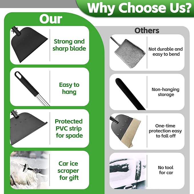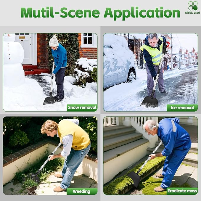 - Applicable All Year Round: Snow Shovel can be used all year round. In addition to being used for snow removal and ice breaking in winter, it can be used to remove weeds, cut grass, dig holes, and level the ground in other seasons etc diverse experience