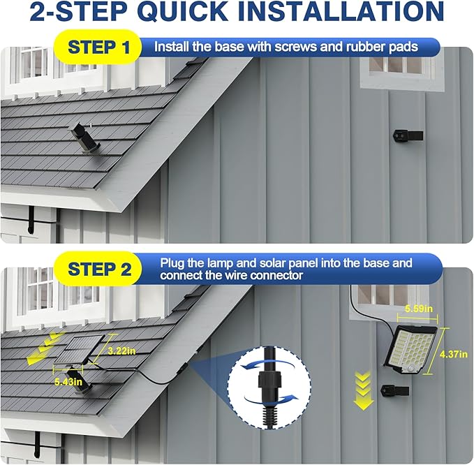 - ๐ฎ๐ณ๐ฌยฐ ๐๐๐ฉ๐๐๐๐ ๐ฃ๐๐ก๐๐ ๐๐๐ฆ๐๐๐ก Unique 3 panel setup for wider 270ยฐ panoramic light than traditional 1 panel design. Increase the range of brightness in the field of vision. Used to eliminate shadows in driveways, yards, and patios. Angled panels maximize coverage, complemented by 120ยฐ motion detection with a 26 ft range as solar dusk to dawn lights outdoor
